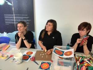 Am 10.5.2014 nahmen wir bei der Langen Nacht der Wissenschaften beim DLR Berlin teil. Unsere Experimentier- und Bastelstrecke war neben dem DLR_School_Lab Berlin. Von 17Uhr bis 24Uhr stellten wir den Besuchern die Aktivitäten im spaceclub_berlin und natürlich auch das orbitall vor. Wir zeigten unsere Jugend forscht Projekte "Das Weltall in der Kiste" und "Einfluss der Sonne auf die Ionosphäre der Erde" und boten eine lange Experimentier- und Bastelstrecke für die jungen Besucher an. Es wurden Sonnenuhren, Pusteraketen, Weltzeituhren gebastelt und ausprobiert, die Reaktionsschnelligkeit getestet und Experimente zum Thema "Das Weltall in der Kiste" durchgeführt. Bei den vorgeführten Experimenten mit den Raketentreibstoffen knallte es auch öfter.