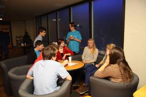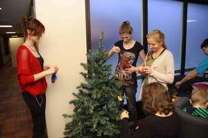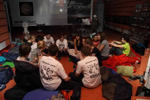 Am 13.12. trafen wir uns im orbitall zur Weihnachtsfeier. Das Besondere daran war, dass wir im Raumfahrtzentrum übernachten konnten. Es gab ein Buffet, das die ganze Nacht zur Verfügung stand, einen Weihnachtsbaum, Überraschungsgeschenke vom DLR und vieles mehr.