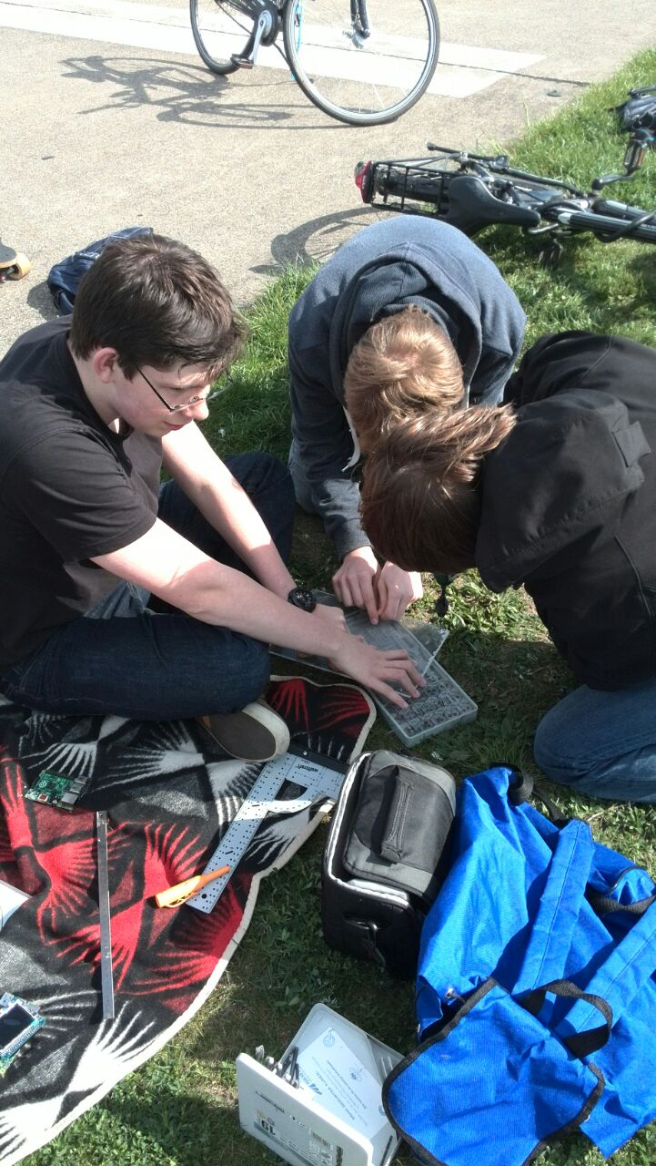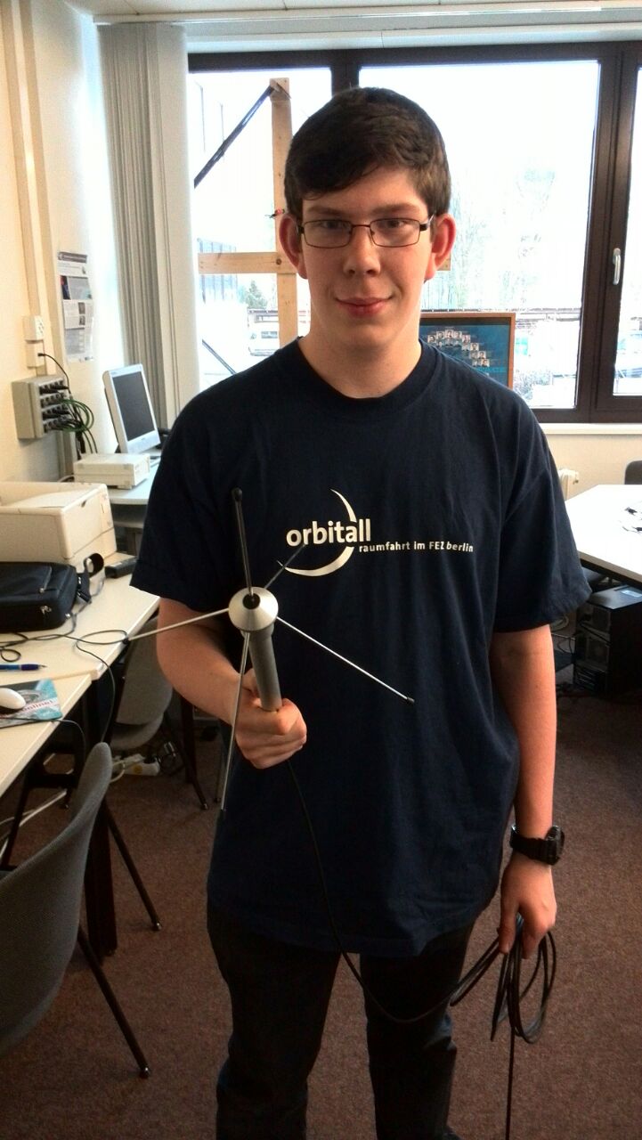 An der Antenne haben wir an dem Tag auch gearbeitet. Wir verwenden eine Doppelquodhybrid-Antenne. Mittels dieser Klassifikation müssen wir sie nicht mehr direkt auf den Satelliten richten, um Daten empfangen zu können. Beim deutschen Wettbewerb benutzten wir eine Yagi-Antenne, welche wir direkt auf den Sender richten mussten. Durch die ungünstigen Wetterbedingungen am Tag des Starts war eine genaue Ausrichtung nicht möglich. Dieses Problem werden mithilfe der neuen nicht mehr haben, was uns einiges erleichtern wird. Um die Antenne zu testen haben wir einen provisorischen "CanSat" gebastelt, der kleine Daten sendet. Dieser wurde an einem Fahrrad befästigt, dies Bodenstation samt Antenne auf dem Boden aufgebaut und das Fahrrad ist losgefahren, so weit bis keine Daten mehr empfangen wurden.