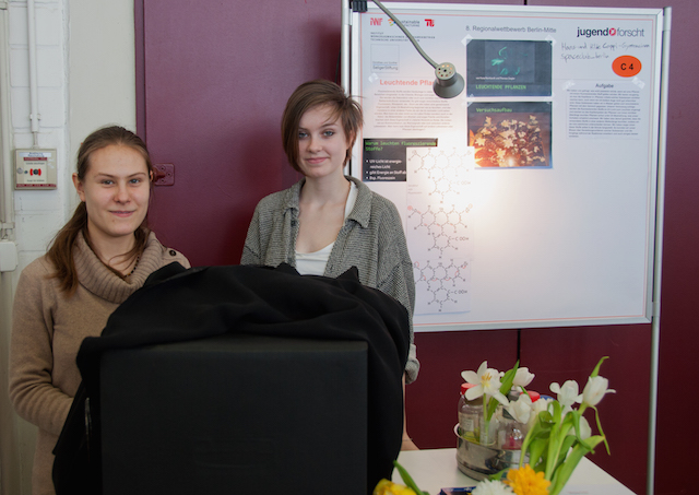 Yuna vom spaceclub nahm zusammen mit Theresa vom Coppi-Gymnasium mit dem Projekt "Leuchtende Pflanzen" teil. Sie erreichten den dritten Platz im Bereich Biologie.