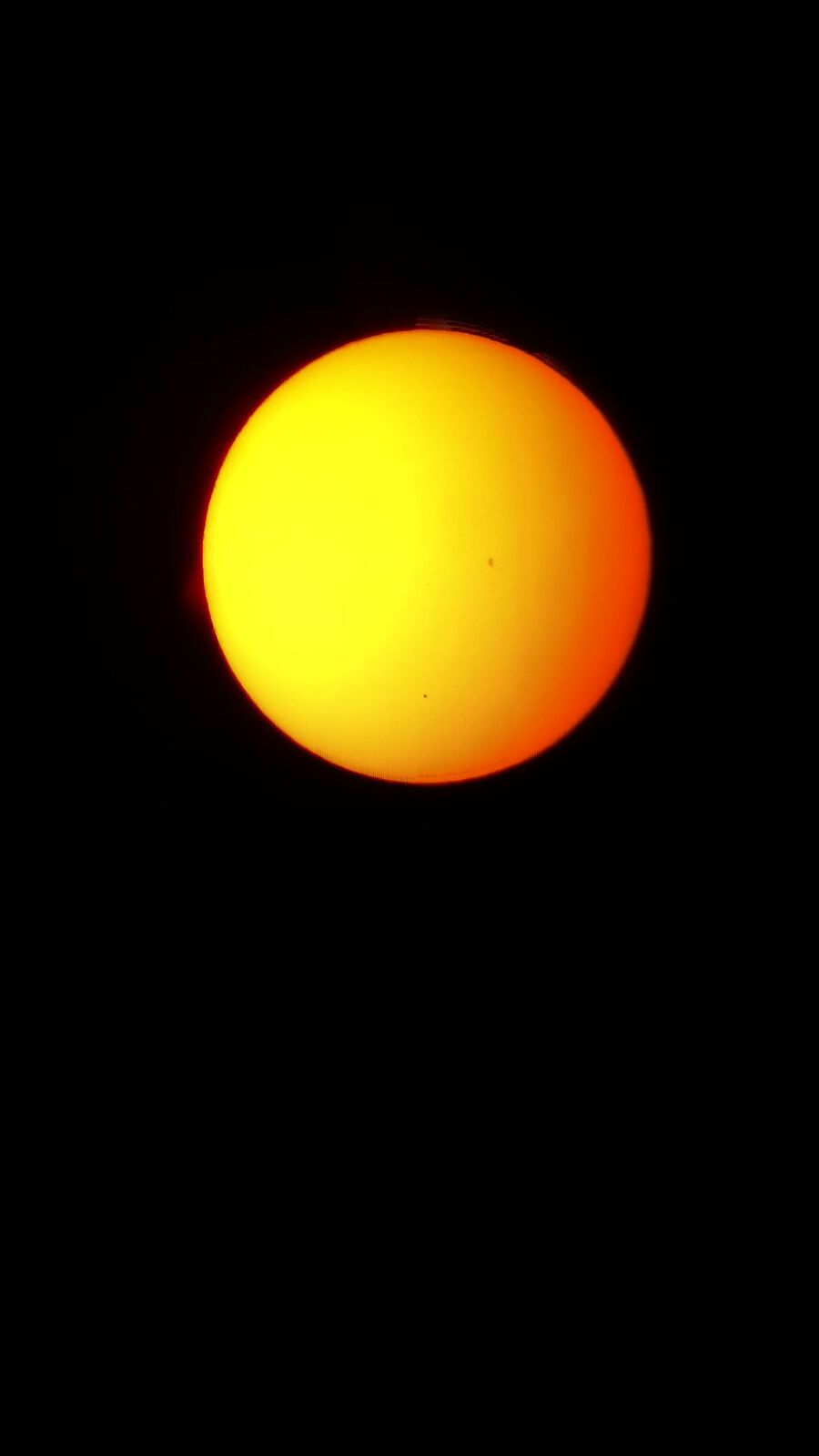 Ca. 2 Stunden später sieht man den Merkur auf 6Uhr. Der Merkur ist kleiner als der Sonnenfleck.